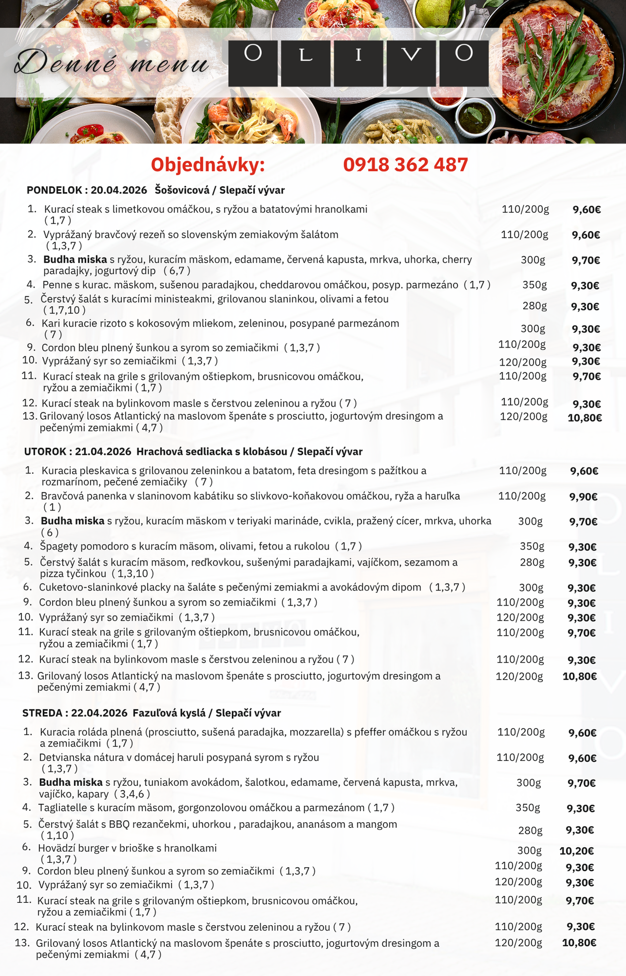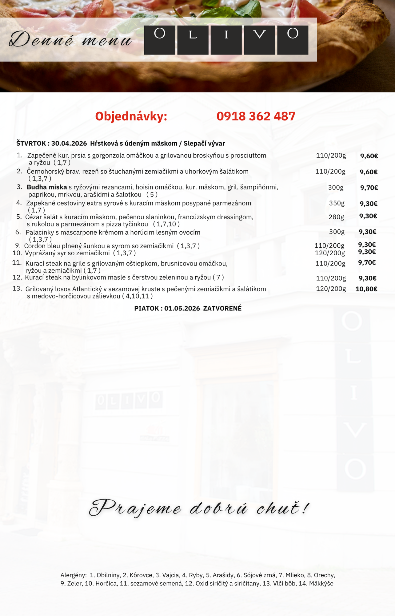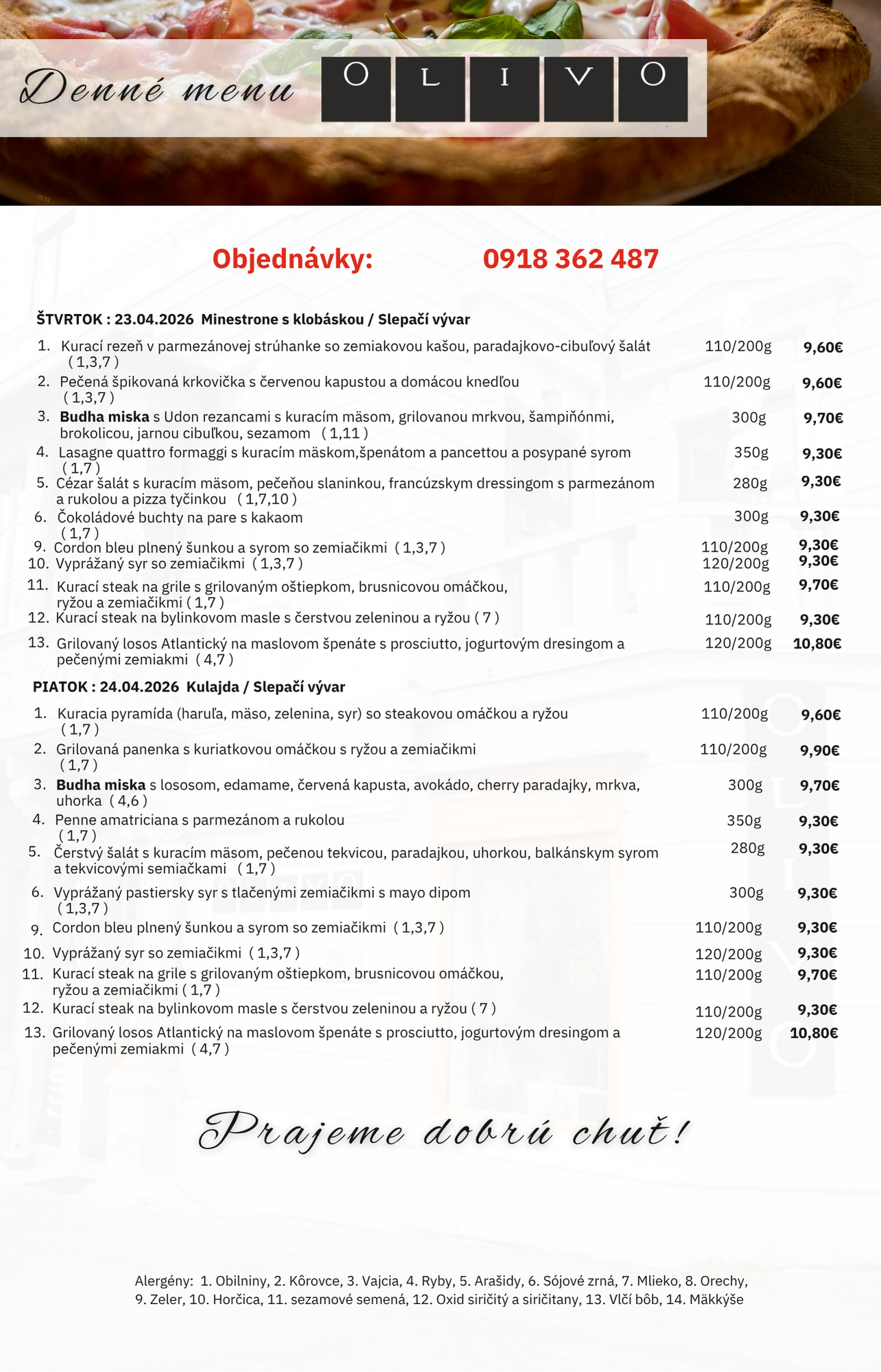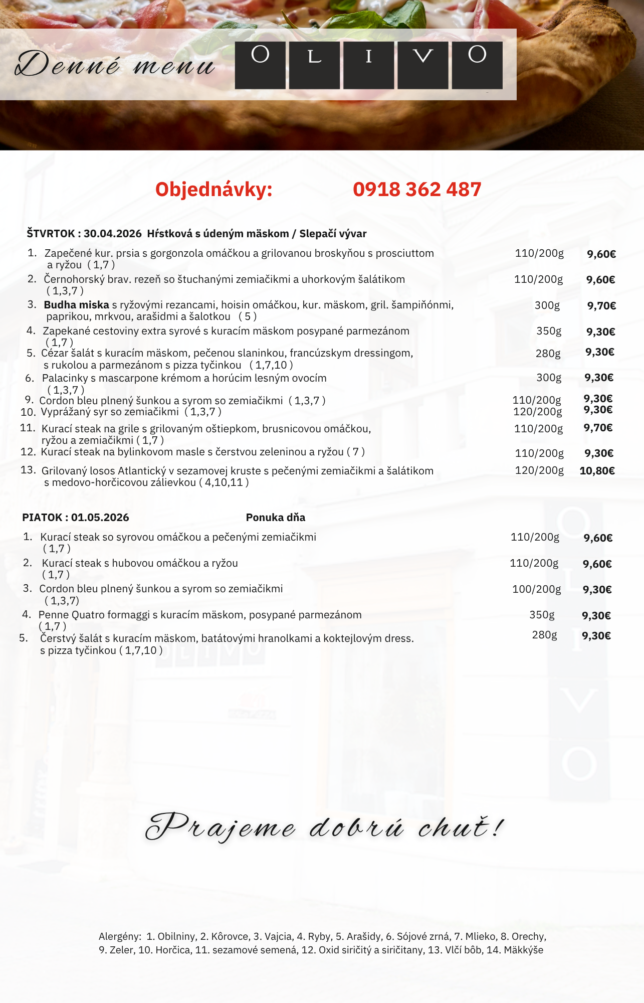 Ak z akéhokoľvek dôvodu nemôžete prísť k nám, nevadí, objednajte si online alebo telefonicky a využite našu donáškovú službu.