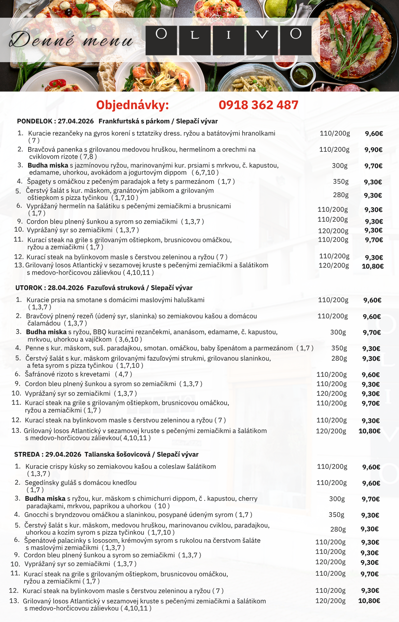 Obedové Menu